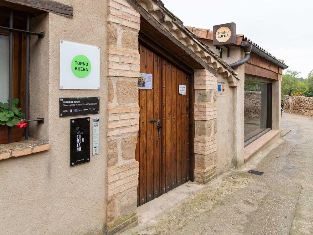 El torno de Buera es una antigua almazara del siglo XVIII. Ha sido restaurada como espacio museístico. Puede verse en funcionamiento y se proyecta un audiovisual que recoge la historia, la cultura y la tradición de un territorio como el Somontano vinculado a un producto tan entrañable y valioso como es el aceite.